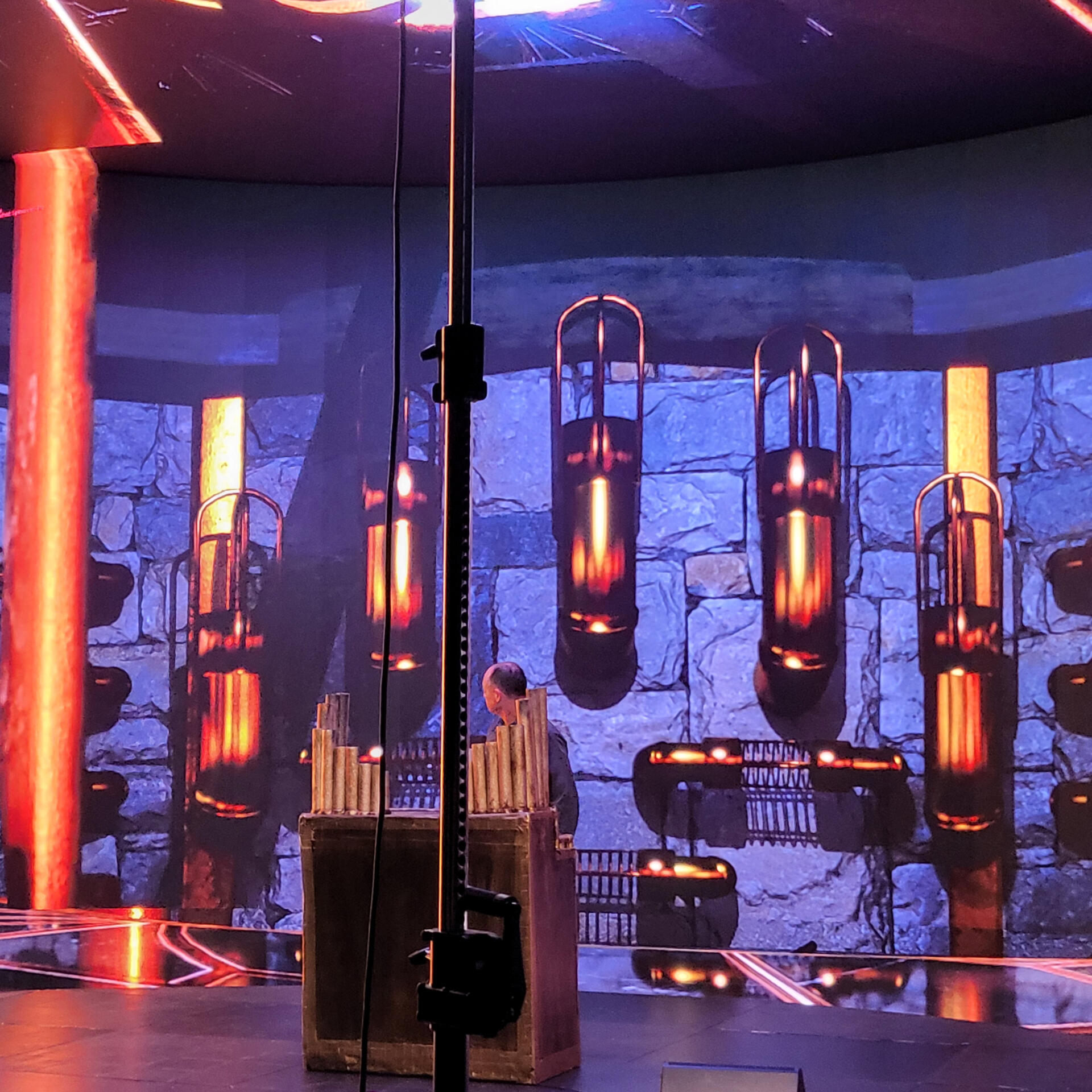 Arcane Melodies was a short video, filmed on an XR Stage (LED Volume). The project was primarily a tech demo; the goal was to showcase the ability to take a live musical performance, and — using MIDI — have the environment around the performer react in real time (like the lightning effects in our scene).We also showcased the ability to have a live synth/sampler (built with Unreal Engine's Meta Sounds) play notes based off of the performer's MIDI input, and both record the audio from this into the video, as well as allowing the performers to hear audio from the game engine on the stage — something that, perhaps surprisingly, is not a trivial task for this kind of setup.